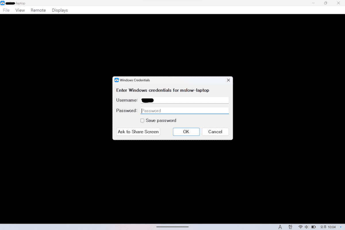 피제어 컴퓨터에서 사용 중인 계정으로 로그인을 합니다.