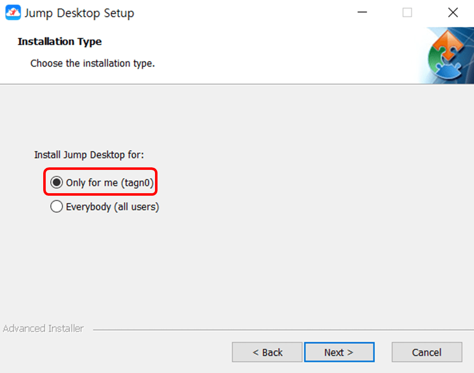 설치파일을 실행하면 설치 형태를 먼저 선택하는 화면이 나옵니다. 저의 경우 개인적으로만 사용할 거고 Everybody로 설정하는 건 조금 찝찝해서 Only for me로 설정했습니다. 이후 절차에 따라 설치를 합니다.