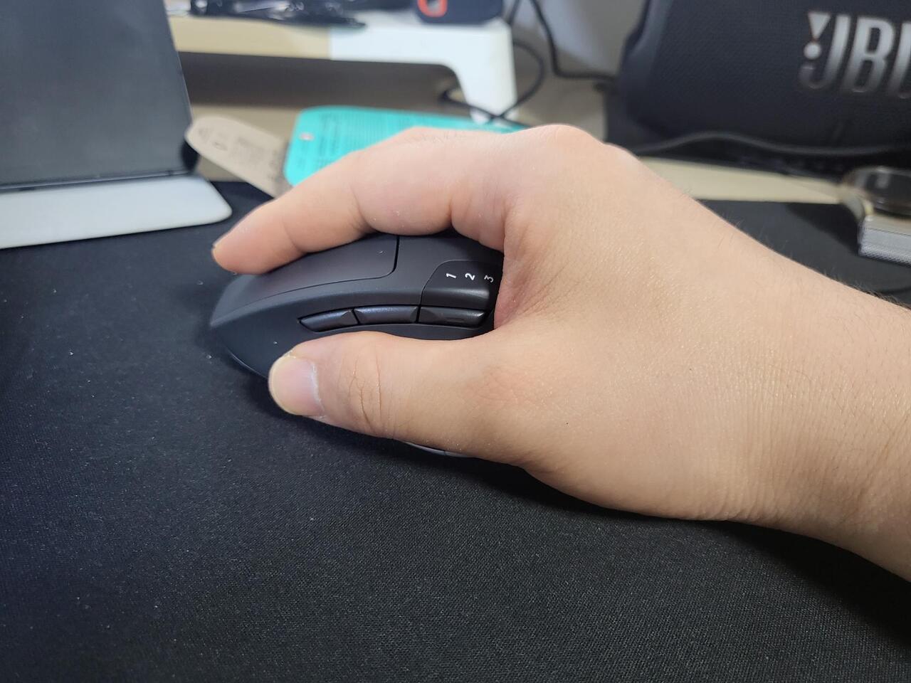 그립 감의 경우 제 손이 남자 치고는 작은 편인데도 불구하고 손안에 알맞게 들어오는 느낌이었습니다. 마우스의 엄지손가락과 새끼손가락이 위치하는 부분이 오목하게 들어가 있어 잡았을 때 더욱 안정감이 느껴졌습니다.
