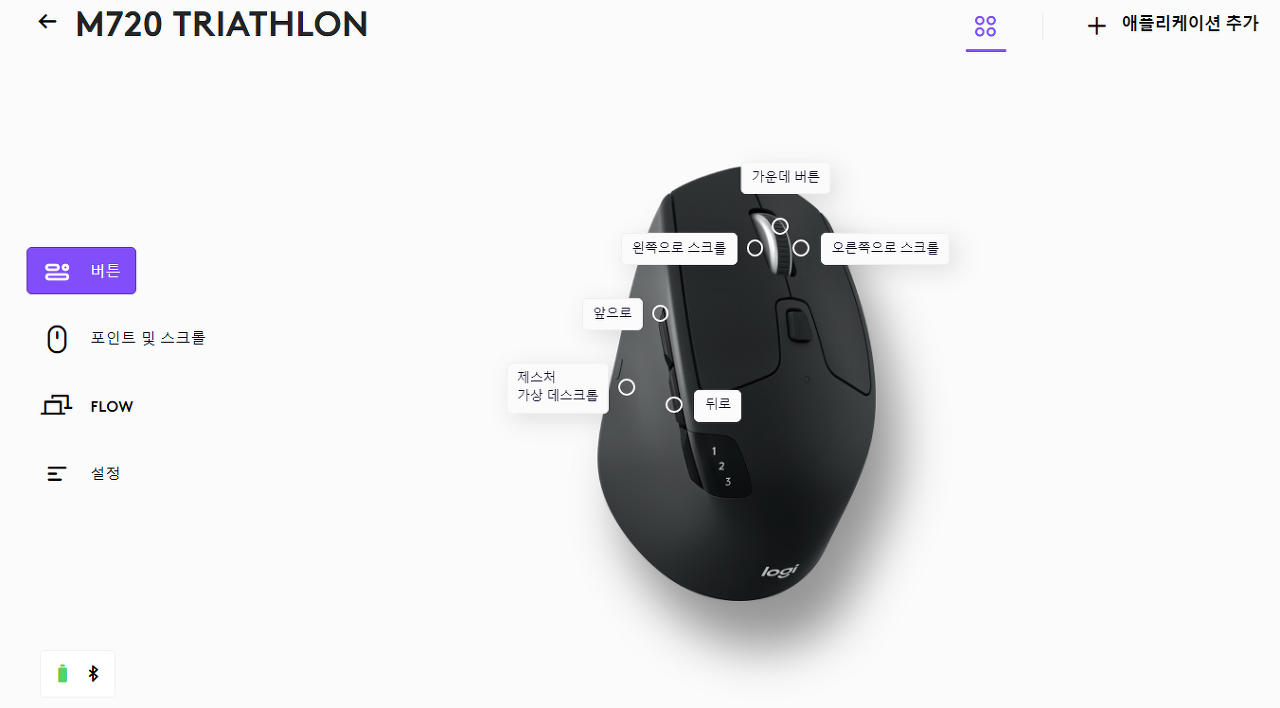 Logi Options+를 사용하면 버튼 커스터마이징이 가능하다.