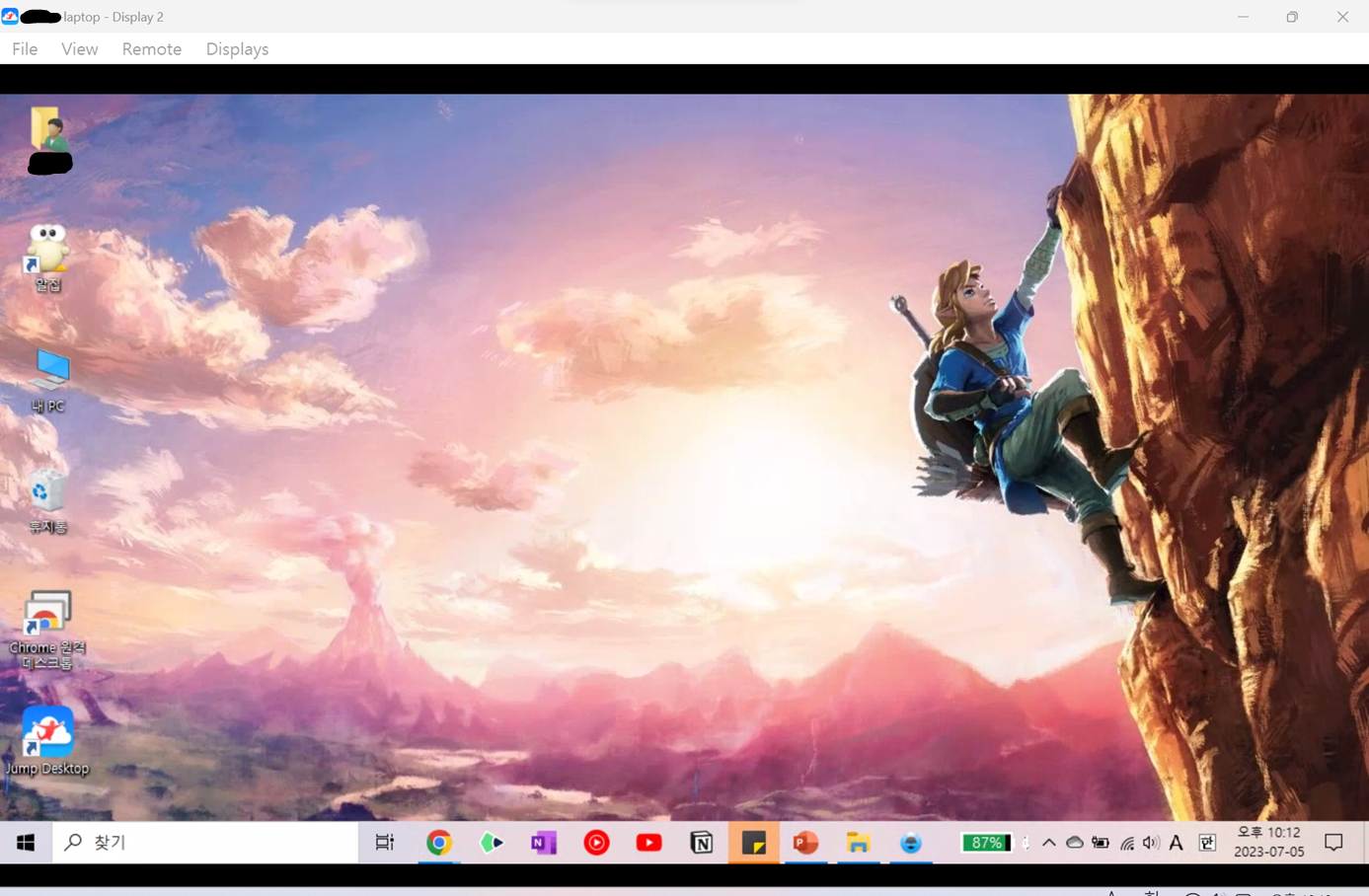 원격접속이 잘 되는 모습을 확인하실 수 있습니다. 이제 피제어 컴퓨터만 전원이 켜져 있다면 언제 어디서든 원격으로 사양이 낮은 컴퓨터나 애플 휴대폰, 아이패드, 맥을 통해 통해 작업할 수 있게 되었습니다.