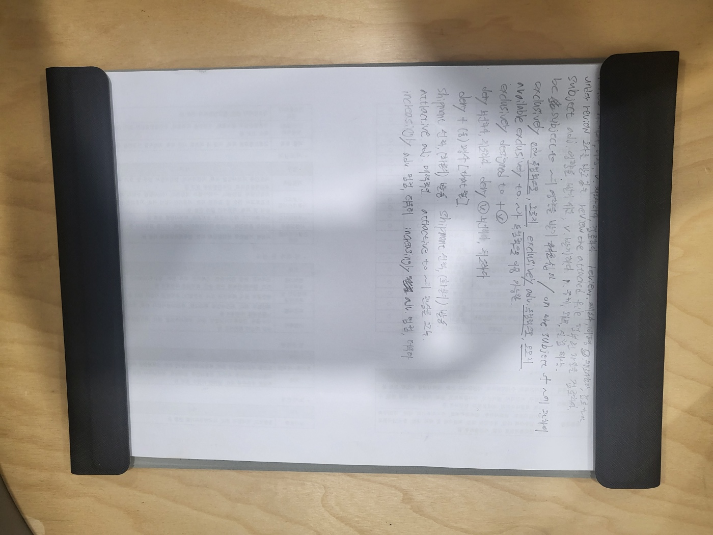 리패드에 종이를 끼우고 몇번 사용해 봤습니다. 자석으로 종이를 잡는 방식이어서 종이가 움직일까 봐 걱정되었지만 생각보다 자력이 강하여 필기 시에 단단하게 잡아주었습니다.