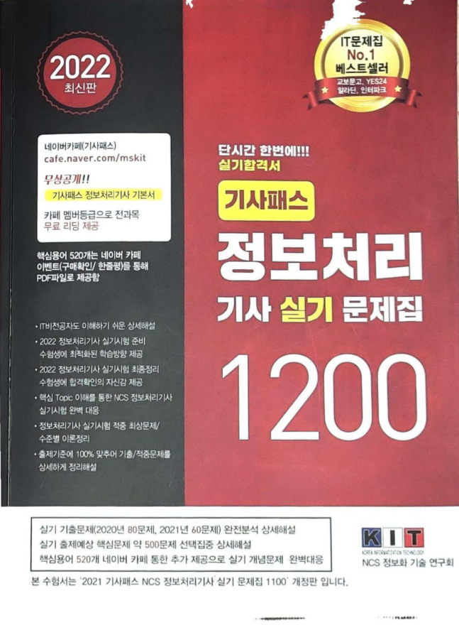저는 수제비로 개념을 잡고 기사패스로 실전력을 기르는 방식으로 공부했습니다. 수제비의 경우 관련 카페도 그렇고 워낙 유명하여 잘 아실 테지만 기사패스 책은 아마 생소하실 것으로 생각됩니다. 본 책은 모든 내용이 문제와 해설로 이루어져 있어서 가물가물한 개념을 다시 한번 잡음과 동시에 문제에 익숙해질 수 있는 책입니다. 정보처리기사 실기의 경우 모든 문제가 주관식이다 보니 무엇보다 문제를 많이 풀어보는게 중요할 것으로 생각됐습니다. 그런 측면에서 본 도서는 1200문제를 기반으로 개념과 함께 공부할 수 있기 때문에 저의 부족한 부분을 충분히 채워줬다고 생각합니다. 만약 시간이 촉박하여 개념을 따로 공부할 시간이 없으시다면 본 도서만으로도 충분히 합격 가능하다고 생각됩니다. 그만큼 개념 설명도 자세히 잘 나와있습니다.