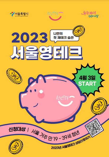 사회 초년생에게 가장 어려운 부분 중 하나는 자산형성을 어떻게 해야 하는가입니다. "누구는 주식을 해서 얼마를 벌었다더라", "누구는 좋은 기업에 취직을 하더니 월급을 열심히 굴려서 얼마를 벌었다더라" 이런 주변의 얘기들은 많이 듣지만 정작 어떻게 해야 하는지 방법에 대해서는 알기 쉽지 않습니다. 저도 그랬고 개인적으로 지금도 많이 어려운 부분 중 하나입니다. 청년분들의 이러한 고민을 해결하고 지원하고자 서울시에서는 최근 서울 영테크 사업을 추진하고 있습니다. 시작한 지 좀 된 사업이지만 혹시나 아직 모르시는 분들이 계실 것 같아 공유드립니다.
